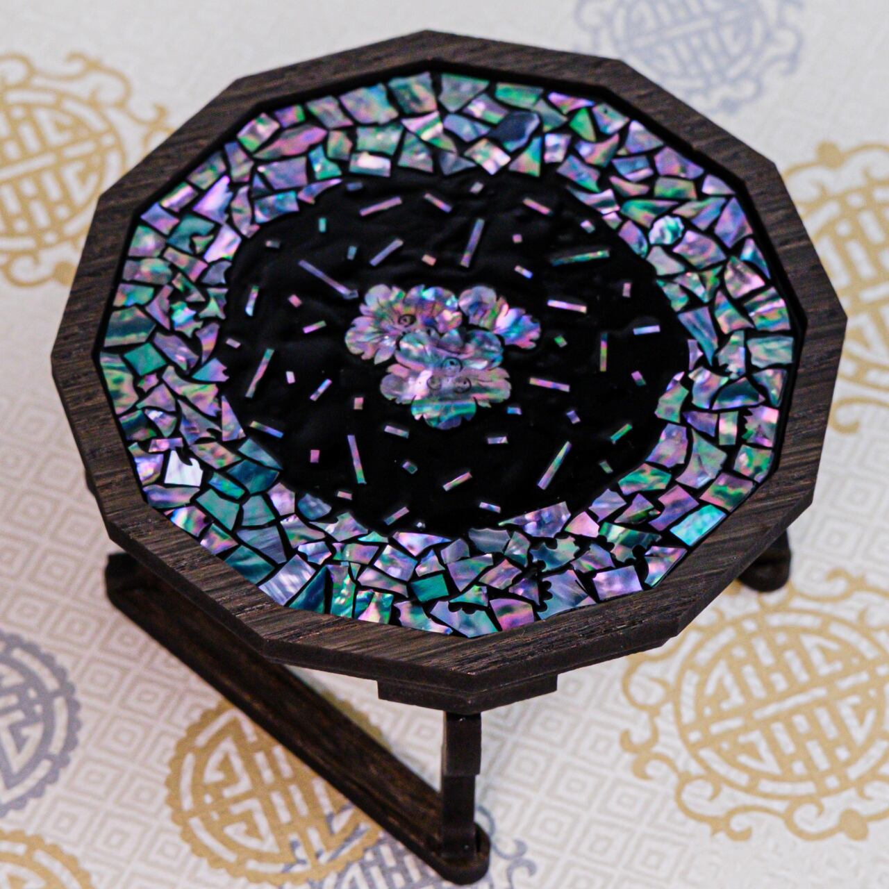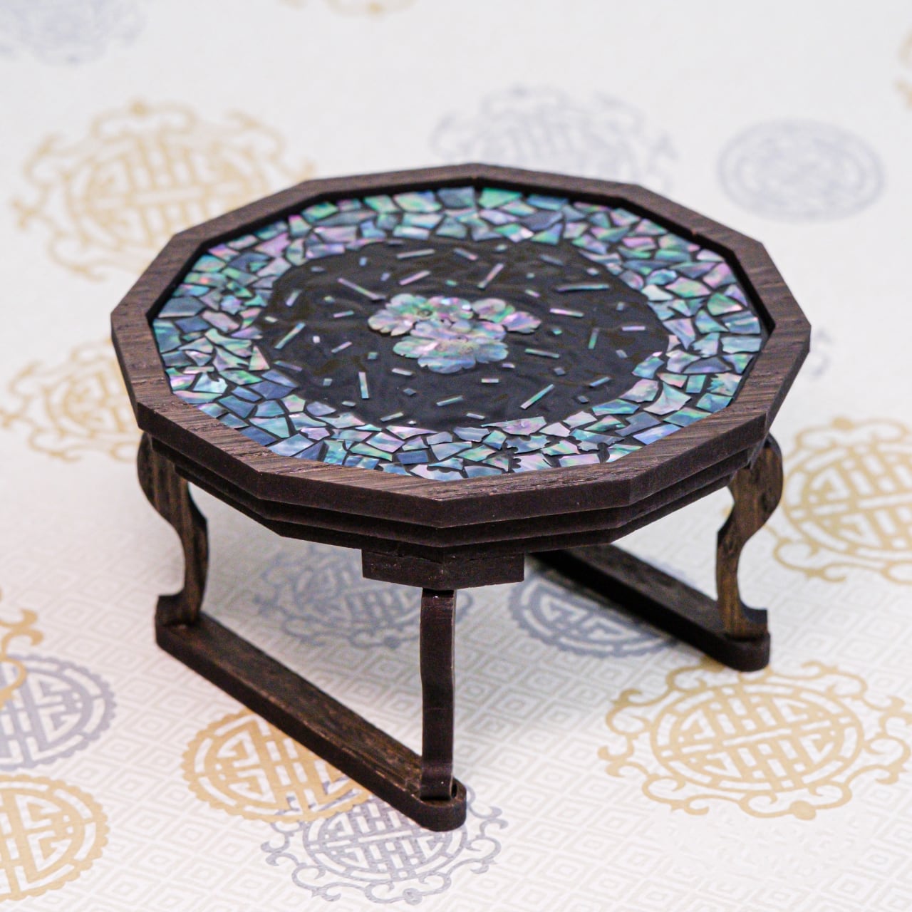その韓国のソバンのミニサイズを組立て、螺鈿でデザインする手作りキットです。